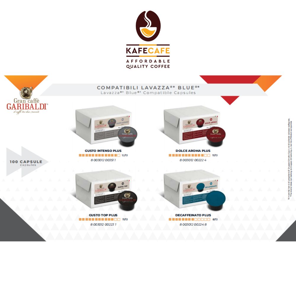 1 box Gran Caffe Garibaldi Lavazza Blue Gusto Intenso x 100 Capsules