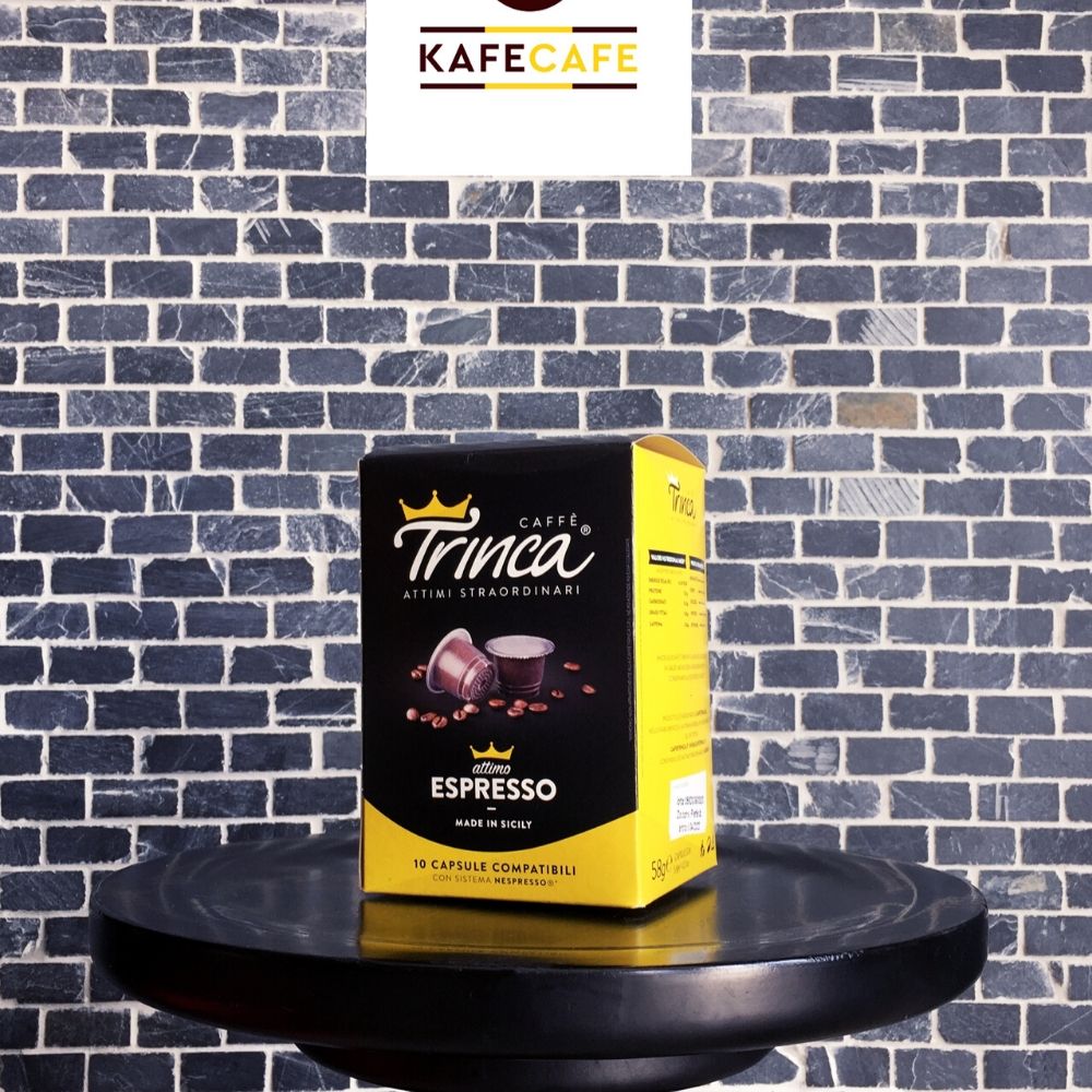 Individually wrapped Trinca Lavazza Point compatible coffee capsules. The coffee is a mixture of 90% Robusta and 10% Arabica. Packed in single dose capsule in a protective atmosphere.